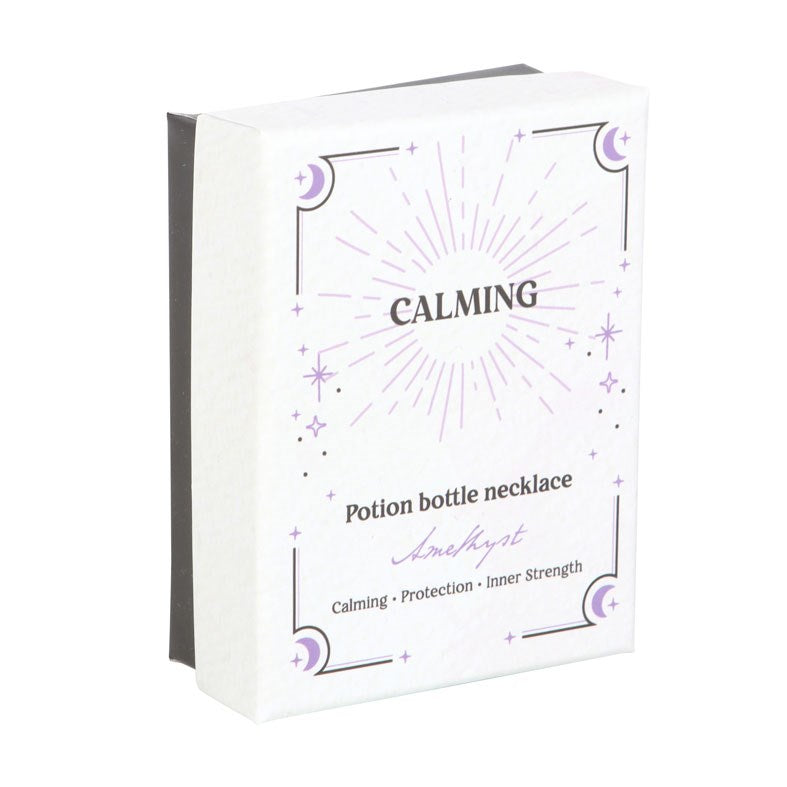 Experience the power of crystal magic with this small potion bottle necklace. Made with genuine amethyst crystal chips and a cork stopper, this necklace not only makes a stunning accessory, but also brings a calming energy and boosts inner strength. It comes in a matching gift box, making it the perfect gift for the special witch in your life. The bottle is made of plastic to prevent breakage and hangs on a nickel-free stainless steel chain.