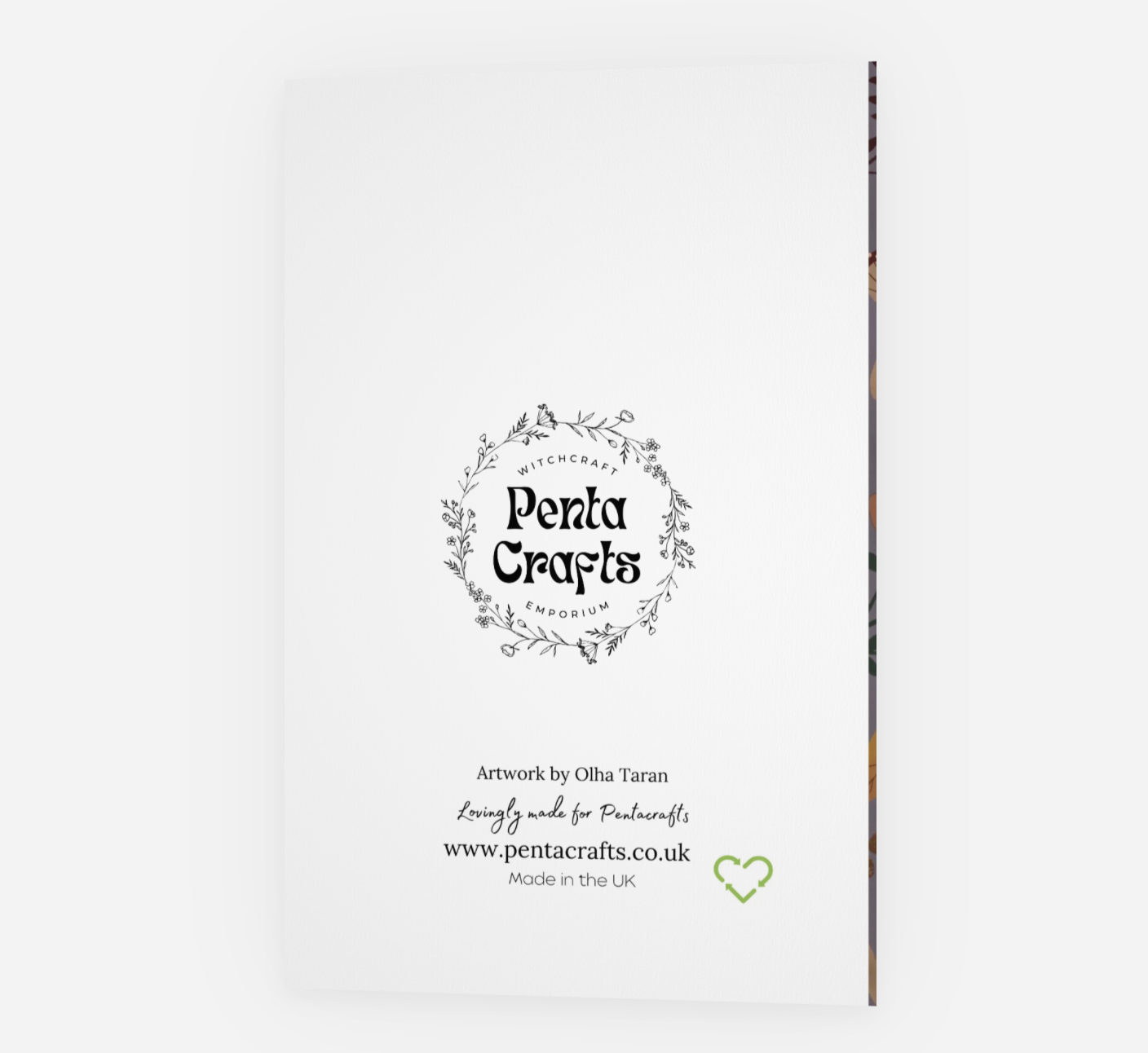 The design showcases an adorable black feline against a bewitching autumn backdrop. Within, a dainty print of a sable cat adds a charming touch.
