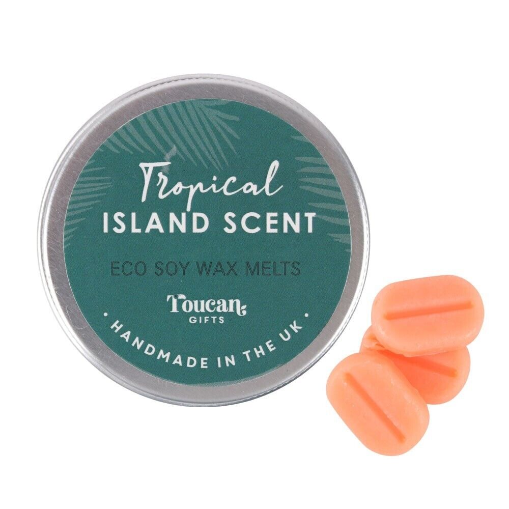 This wax melt burner gift set includes a peachy-pink accented ceramic burner with 'Relax Mum' text. Includes a tin of Tropical Island eco soy wax melts in a lovely gift box and makes a perfect gift for Mother's Day and birthdays